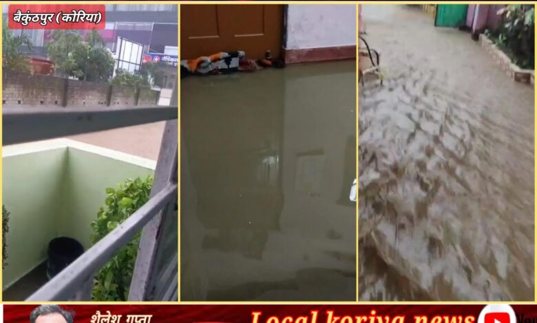 कोरिया। बैकुंठपुर शहर में हुई तेज बारिश ने एक बार फिर नगर पालिका की लापरवाही उजागर कर दी। रविवार को हुई करीब 3 घंटे की झमाझम बारिश से नगरपालिका कार्यालय के पीछे स्थित वार्ड नंबर 12 के रहवासी बुरी तरह परेशान हो गए।